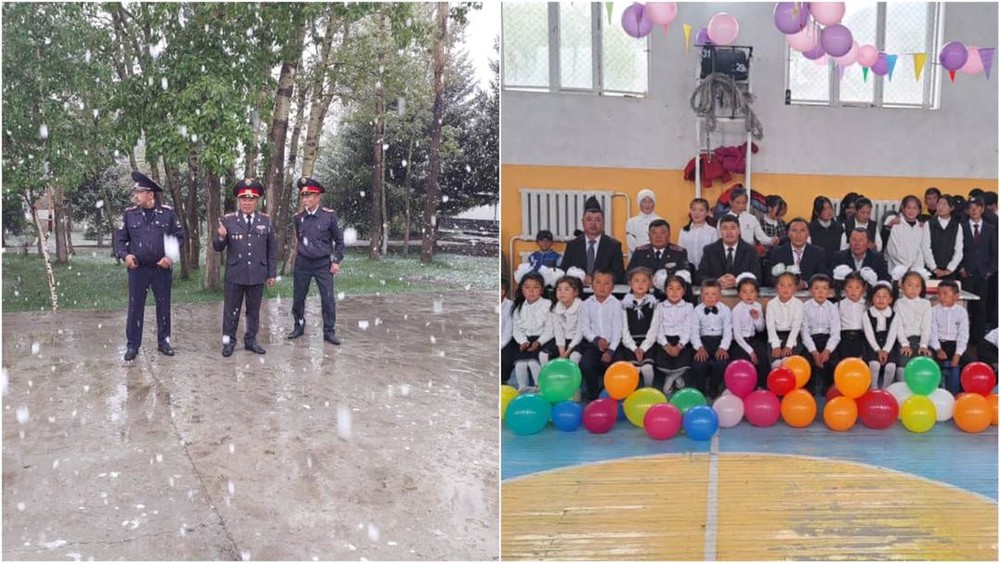 Видео — Чоң-Алайда кар жаап, акыркы коңгуроо аземи спорт залда өтүп жатат